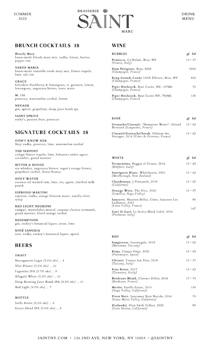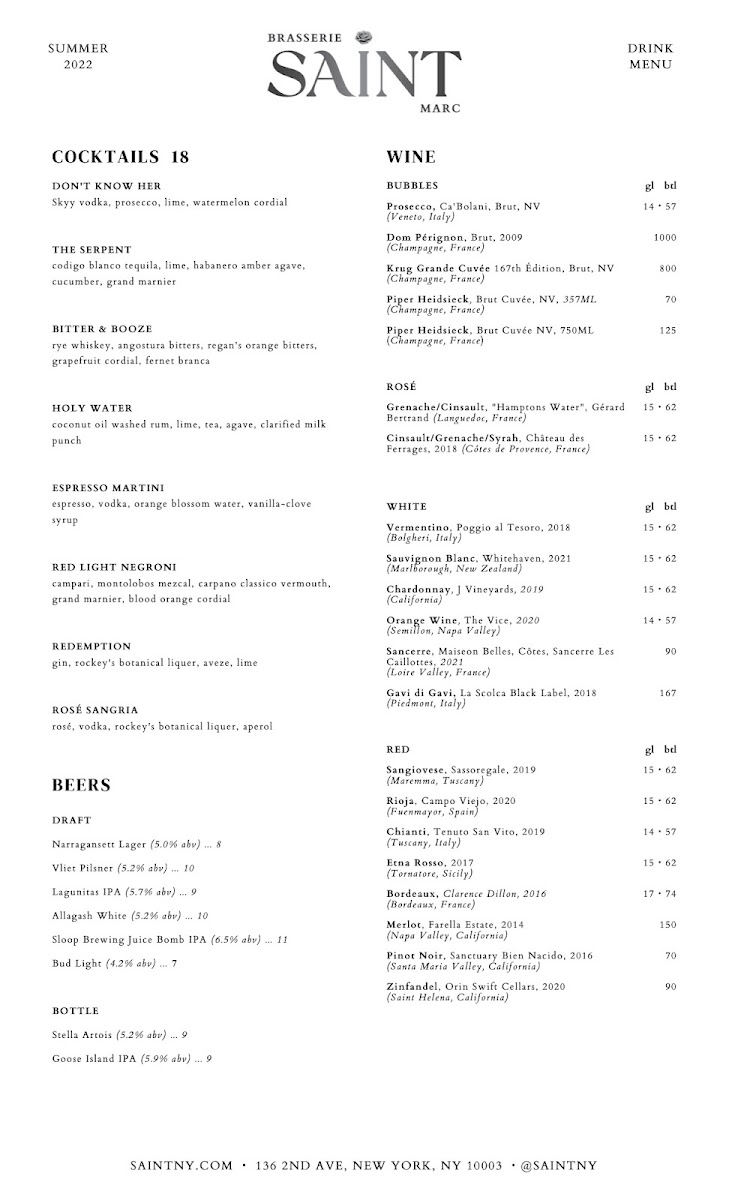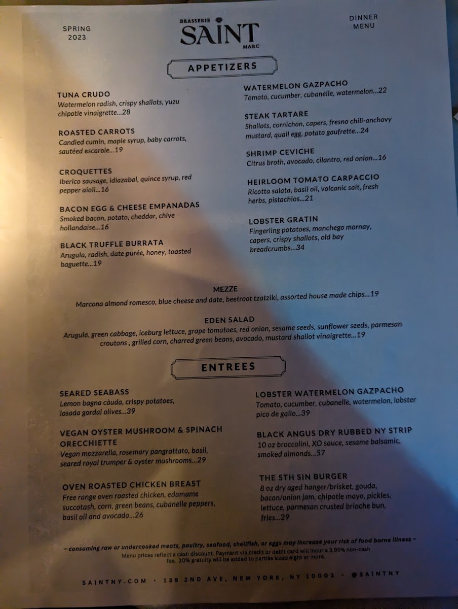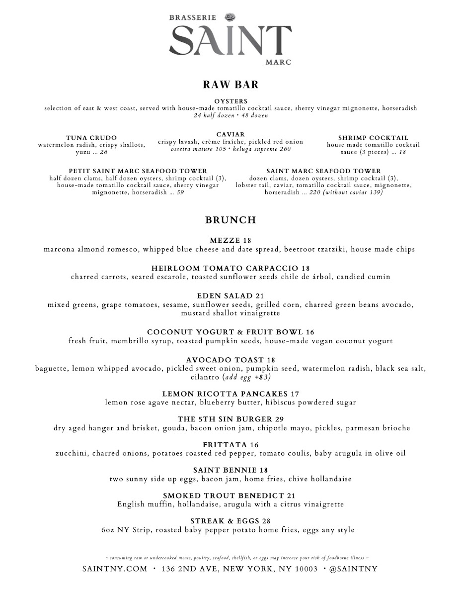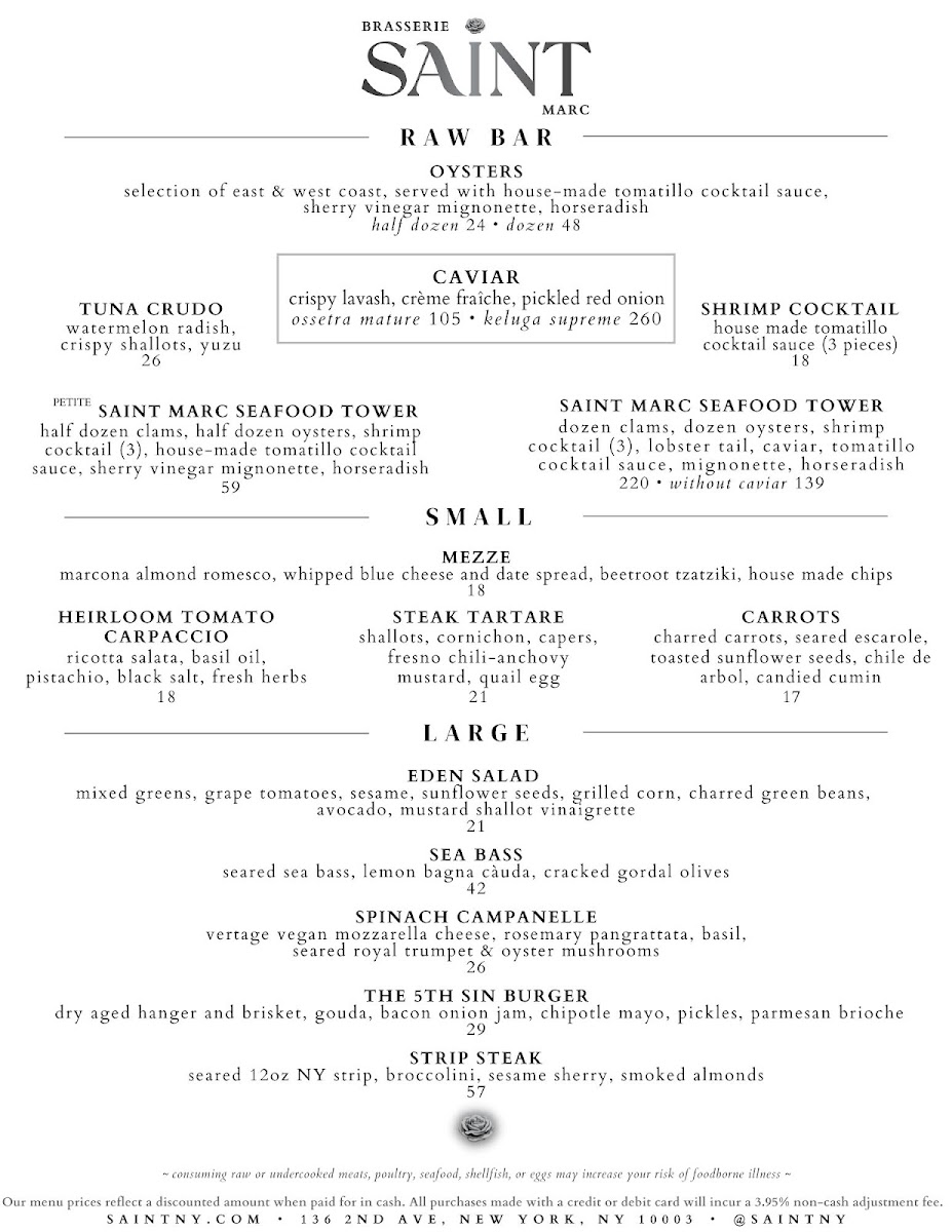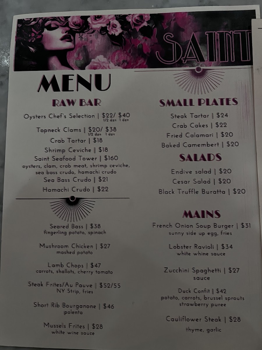 SAINT RESTAURANT BAR & SPEAKEASY Menu (2025 Update)